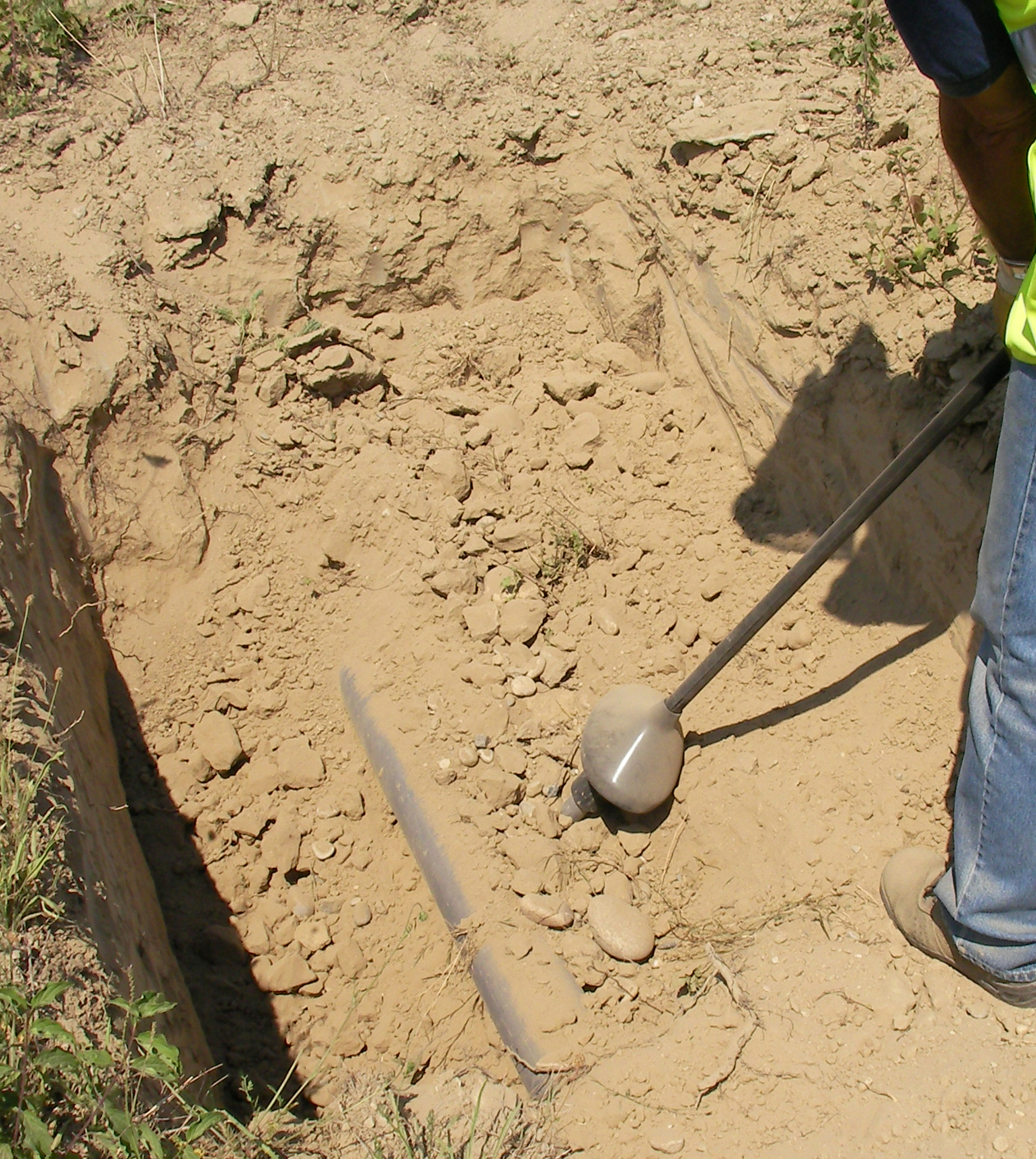 Dans le cas d’un raccordement sur une canalisation existante, il faut généralement dégager la canalisation, accroupi au fond de la tranchée à la main ou à la truelle.